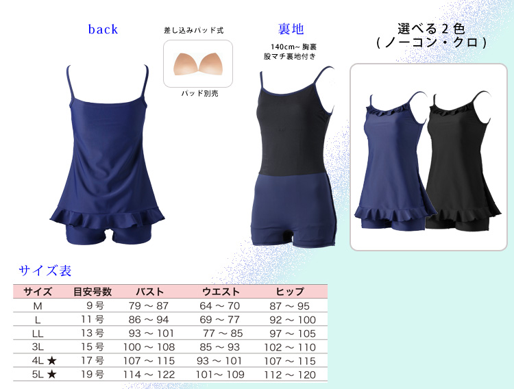 ◯仕様:胸裏・股マチ裏地付き 差し込みパット対応(別売り: S-L・LL・3L)