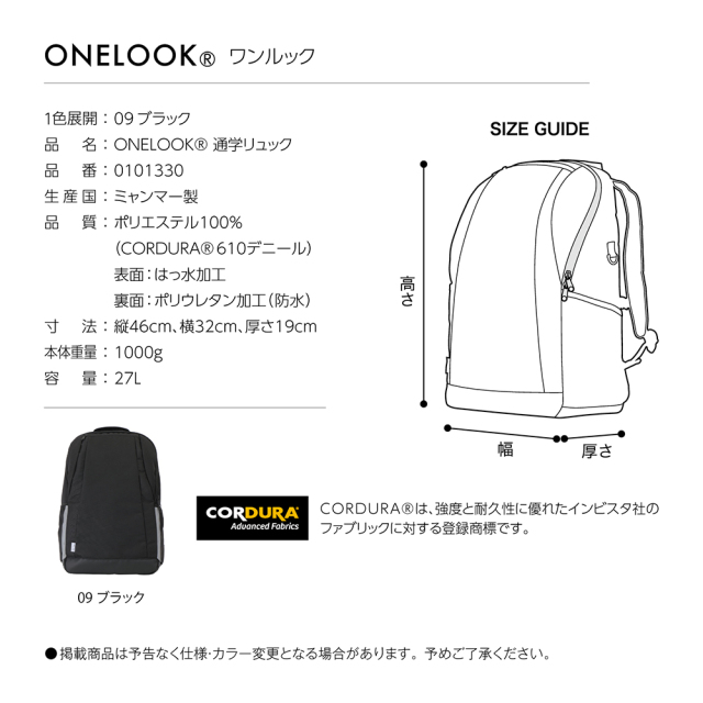 | 製品名: | ONELOOK ワンルック通学リュック 101330 |