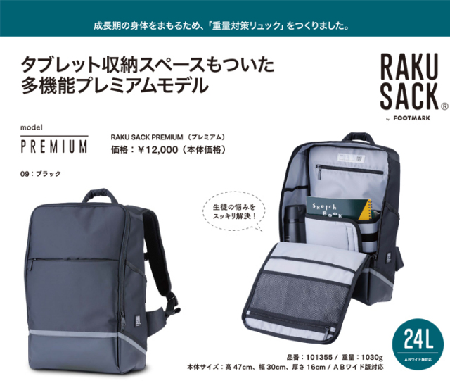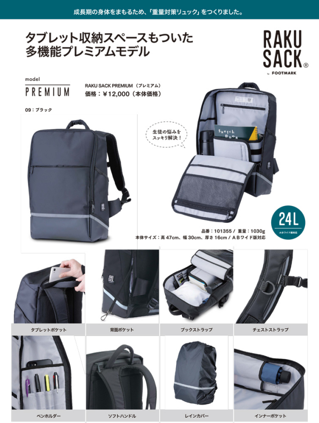 中学3年間オリジナル28Lで通学しました。まだ使用できますが、少し小さめにしたかったのとデザインや機能性にひかれて高校入学を機に買い替えました。 背面ポケットは電車やバスに乗るときに便利で、定期を取り出しやすいと娘も気に入っています。 ダブレットポケットにはクロームブックも入ります。 |