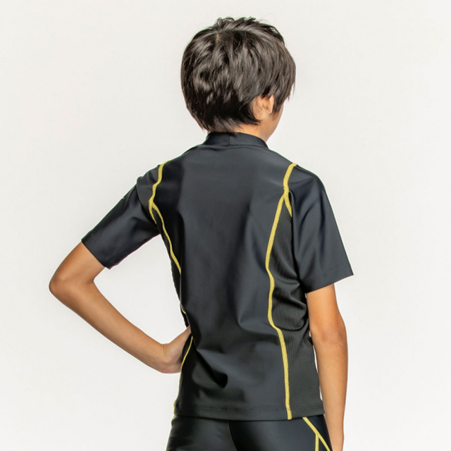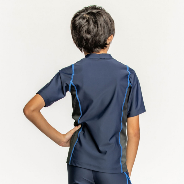 日焼け対策やプールでの冷え対策におすすめな半袖ラッシュガード。着替えの際に突っ張りやすい両脇は着替えやすさ重視で伸縮性ある素材を使用。UPF50+素材採用。※こちらの商品はラッシュガードのみの販売となります。