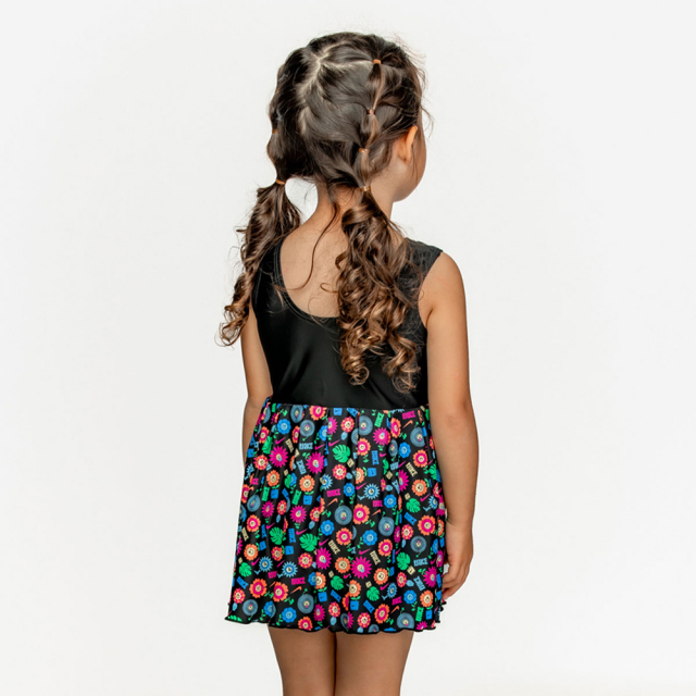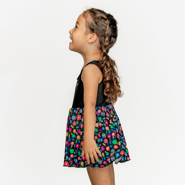 初めてのプールや海におすすめ、ワンピース水着。一体型なのでアクティブな動きにもフィットし、お着替えも簡単。バストとクロッチ部分は裏地つき。※モデル 身長100cm 着用サイズ100cm