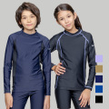 日焼け対策やプールでの冷え対策におすすめな長袖ラッシュガード。着替えの際につっぱりやすい体の側面に伸縮性のある素材を使用し、スムーズな着脱をサポート。UPF50+素材採用。