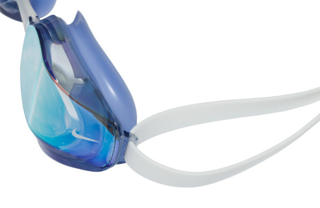WORLD AQUATICS認証。トップアスリート向けスイミングゴーグル。レンズサイズは大きめ。低抵抗を重視したカーブレンズで広い視野を確保。目元を見られるのが苦手な方や屋外での使用におすすめなミラー加工あり。様々な顔形状にフィットするクッションを採用。交換可能な4サイズの鼻ベルト付き。独自のバッククリップでサイズ調節可能。UV加工と曇り止めレンズで、快適な視界を確保。