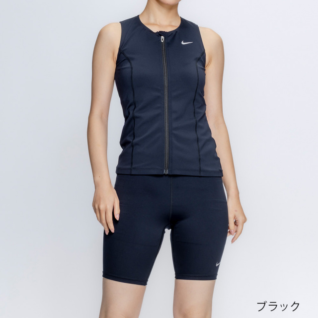 最もシンプルなNikeのベーシックコレクションは初めての1着にもピッタリ。 セパレートタイプのフィットネス水着。 トップスはジッパー付きで着脱簡単、トップスとボトムスを留められるスナップボタンがめくれを防いで安心。 ブラカップ付属。ボトムスは裏地付き、長めな股下19.5cm(Mサイズ)。 ※EC限定商品
