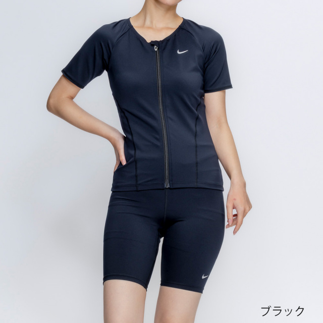最もシンプルなNikeのベーシックコレクションは初めての1着にもピッタリ。 袖付きトップスで腕周りをカバーできるフィットネス水着。 トップスはジッパー付きで着脱簡単、トップスとボトムスを留められるスナップボタンがめくれを防いで安心。 ブラカップ付属。ボトムスは裏地付き、長めな股下19.5cm(Mサイズ)。 ※EC限定商品