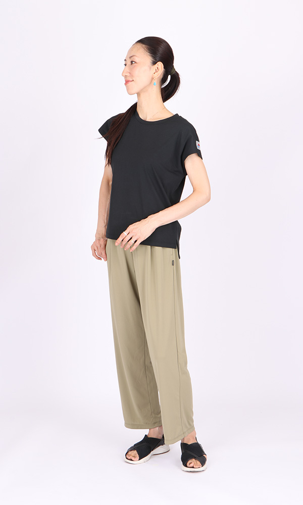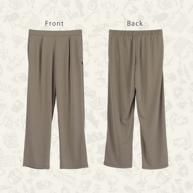 UVカット機能に加え、吸水速乾、虫を寄せ付けにくい加工を施した生地を採用したワイドパンツです。ウエストゴムのフロント部はフラットな仕様ですっきりとした見た目。シンプルなデザインで、アウトドアシーンから普段使いまで幅広く活用できるアイテムです。