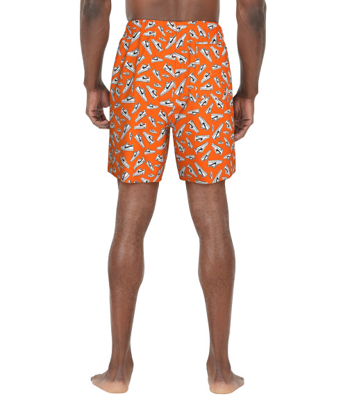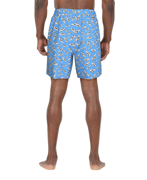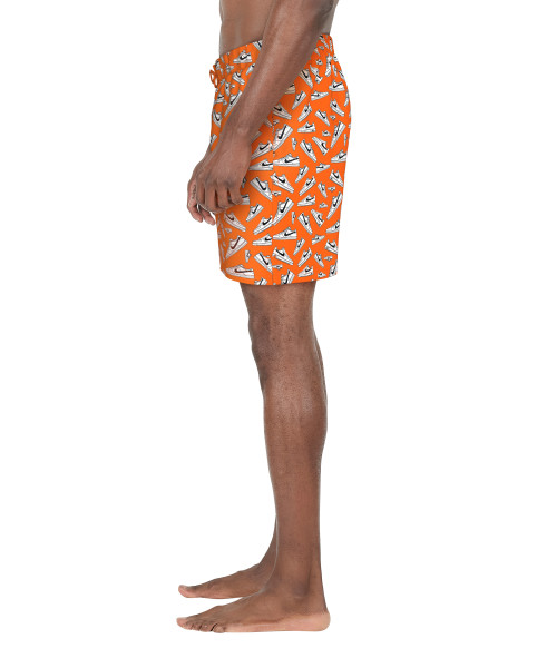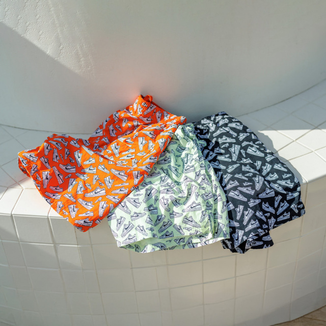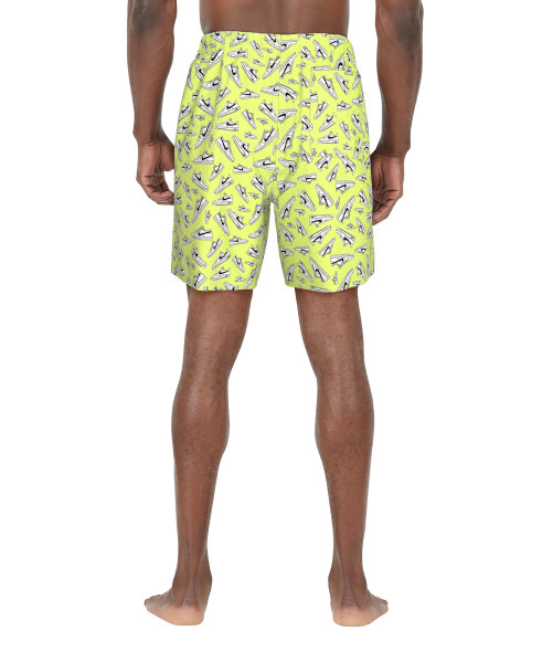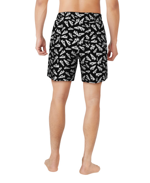 全面にエアフォース1がプリントされたボレーショーツ。さらっとした肌触りで軽い履き心地。リサイクル素材を使用。付属のドローコードによりウエスト調節が可能。股下7インチ(17.7cm)、サイドポケット、内側総裏地仕様。