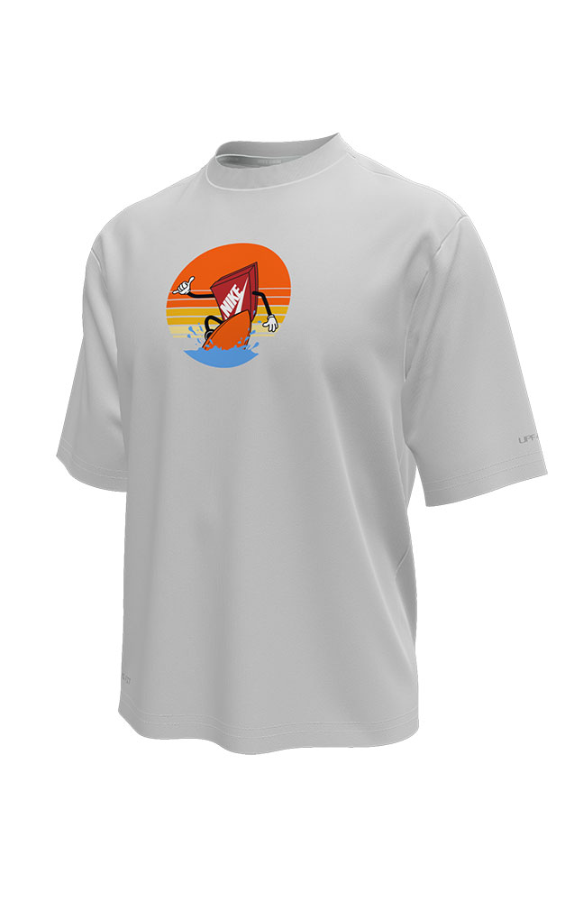 | シューズボックスのオリジナルキャラクターが特徴の五分袖キッズハイドロガード。 適度にゆとりのあるフィット感で、速乾性に優れたDri-FIT素材で快適な着心地。UPF40+で日焼け対策にもおすすめ。 |