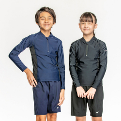プール授業では年々、紫外線対策や上半身を見せたくないなどの理由からラッシュガードを着用する子が増えてきています。ラッシュガードは寒い時期のプール授業では冷え防止の効果もあります。最近では男女兼用で着ることができるセットアップの水着も登場しております。
